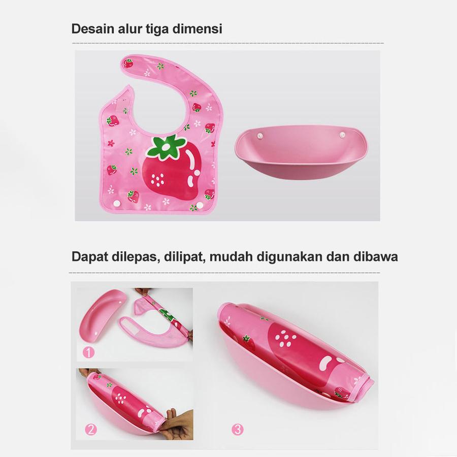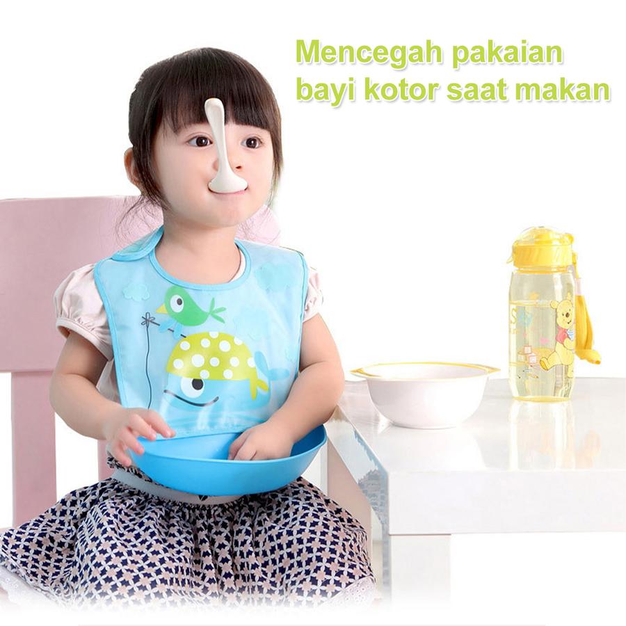 | Fitur Utama | – Bahan PEVA + LDPE: Anti-karat, waterproof, dan higienis. – Desain ergonomis dengan leher elastis 2 tingkat, pas nyaman tanpa mengiritasi kulit bayi. – Alur tiga dimensi: Menampung makanan tumpah dengan efektif. – Ujung dibulatkan dan tanpa jahitan kasar untuk kenyamanan maksimal. |