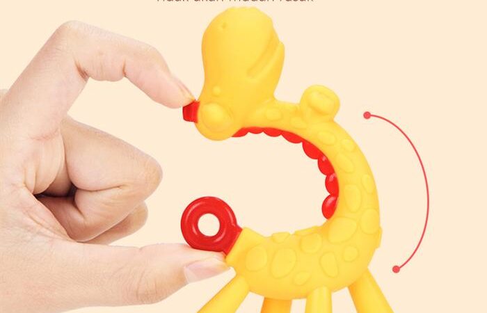 Berikan kenyamanan terbaik untuk masa tumbuh gigi si kecil dengan Lakoe Giraffe Teether. Dirancang khusus untuk memijit gusi bayi yang sedang gatal dan nyeri, mainan teether berbentuk jerapah yang menggemaskan ini terbuat dari bahan silikon food grade 100% yang sangat lembut, aman, dan bebas BPA.