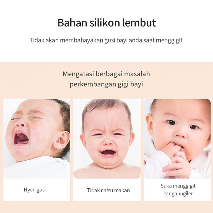 Teether ini memiliki berbagai titik gigitan dengan tekstur berbeda yang efektif memijit gusi dan merangsang pertumbuhan gigi. Desainnya yang unik memungkinkannya dapat berdiri tegak, sehingga selalu higienis saat diletakkan di atas meja. Proses pembersihannya pun sangat praktis dan cepat, menjamin kebersihan terjaga setiap saat.