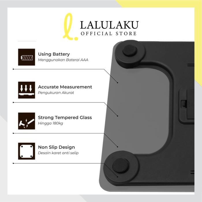 Ukur berat badan dengan presisi dan gaya modern bersama Timbangan Badan Digital Lalulaku. Dirancang khusus untuk lingkungan kamar mandi yang lembap, timbangan ini memberikan akurasi tinggi dengan tampilan digital yang mudah dibaca. Dukung kebugaran dan target kesehatan Anda dengan alat yang andal.