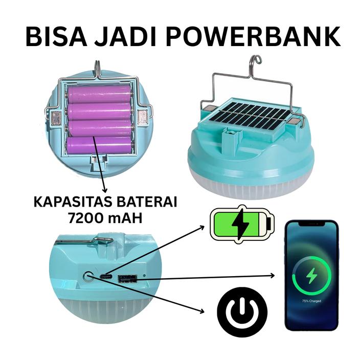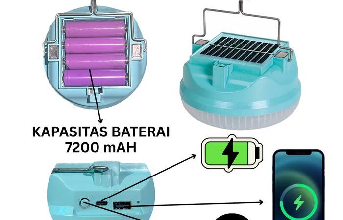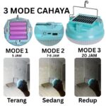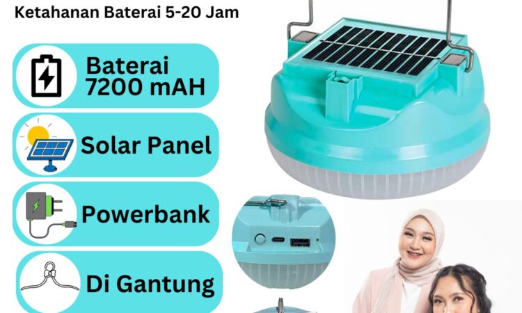 | Fungsi & Kegunaan | Lampu gantung serbaguna, perfect untuk: Taman, Camping, Lapangan, Warung, Garasi, dan situasi darurat mati listrik. |