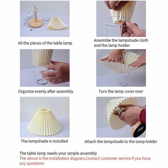 - Bahan: Kap lampu dari kain dan PVC, alas dari kayu.