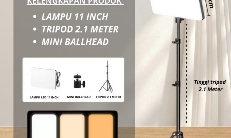 - Paket Professional: Lampu Ring LED 11inch + Tripod 2,1m yang dapat disesuaikan ketinggiannya.