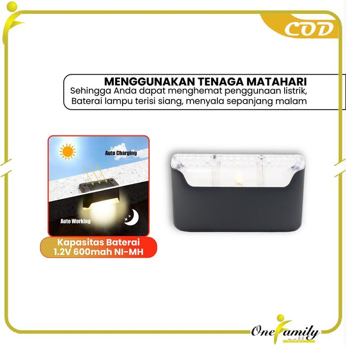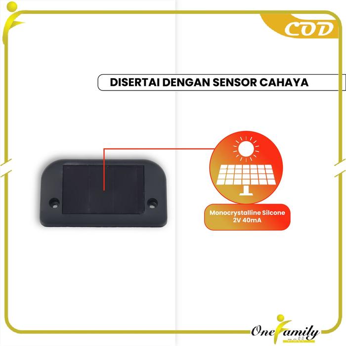 BateraiNi-MH 1.2V 600mAh, terisi otomatis di siang hari dan siap digunakan semalaman.