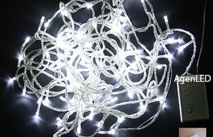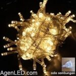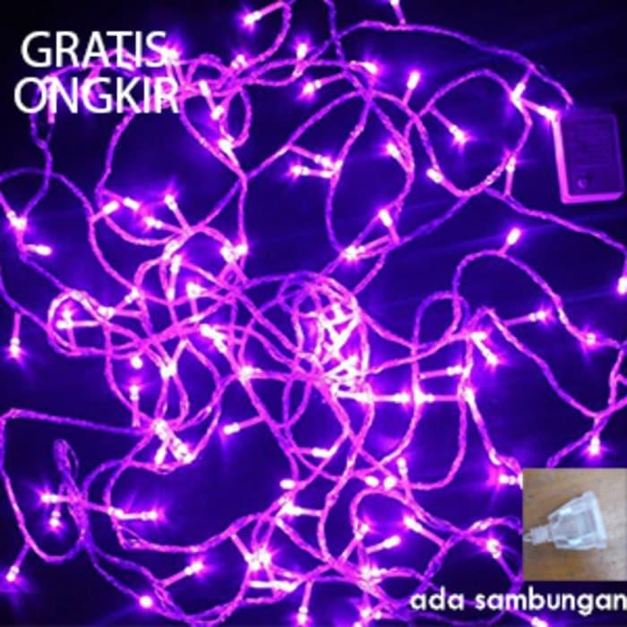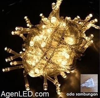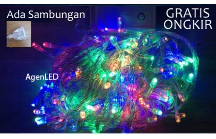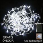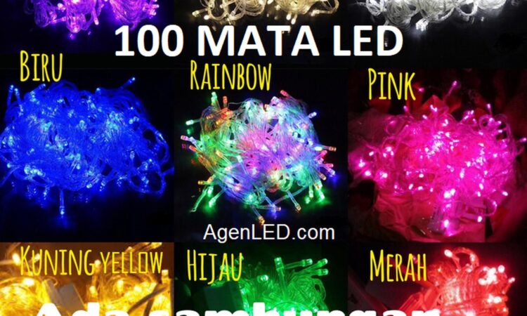 Tersedia berbagai pilihan warna siap kirim: Putih, Warm White, Hijau, Merah, Biru, Ungu, Pink, Kuning Yellow, dan Rainbow/Warna-warni (RGB). Setiap set lampu terdiri dari 100 mata LED dengan panjang total 10 meter dan dirancang untuk voltase 220V.
