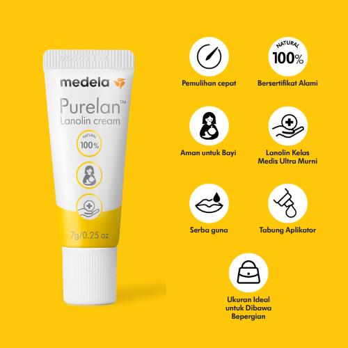 Purelan dari Medela adalah krim lanolin medis 100% alami dengan formula tunggal, dirancang untuk meredakan nyeri puting dan kulit kering secara instan. Teksturnya yang pekat membentuk lapisan pelindung, mempercepat penyembuhan sekaligus melembabkan kulit dari dalam. Aman digunakan tanpa perlu dibilas sebelum menyusui, serta telah teruji dermatologis dan hypoallergenic untuk kulit sensitif.