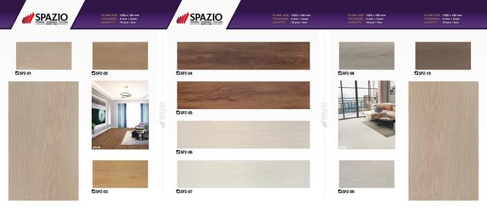 - SPC (Stone Plastic Composite) – Material lantai vinyl berbasis batu kapur dan PVC, dikenal dengan kepadatan dan stabilitas tinggi.