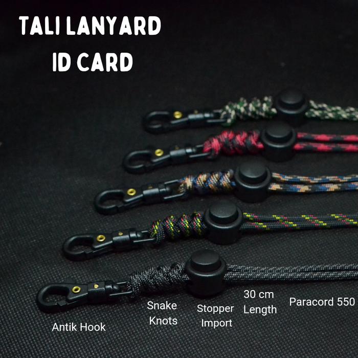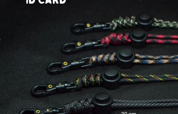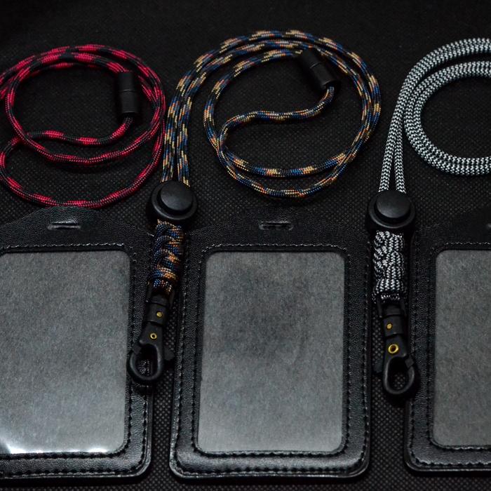 Tali terbuat dari Paracord 550 yang terkenal sangat kuat dan tahan lama, mampu menahan beban hingga approximately 550 pon. Dilengkapi dengan card holder berkualitas yang terbuat dari kulit sintetis, memberikan tampilan yang elegan sekaligus melindungi kartu identitas atau akses Anda dari kerusakan.