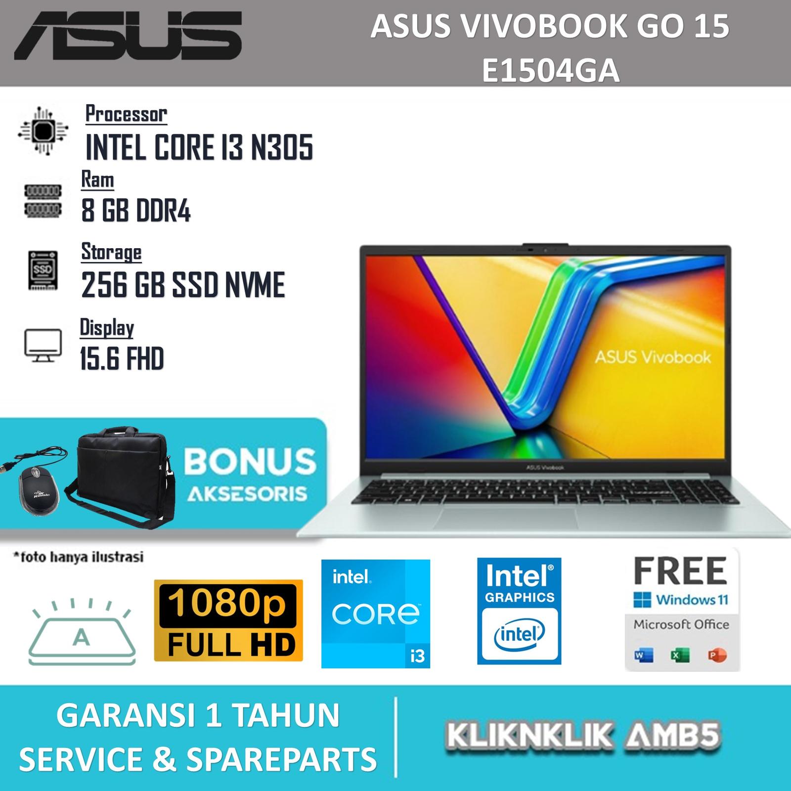 Temukan partner kerja dan hiburan andalan Anda dengan Laptop Asus Vivobook Go 15. Didukung prosesor Intel Core i3-N305 yang tangguh dengan 8 core, laptop ini menjamin kinerja responsif untuk multitasking sehari-hari, mulai dari mengerjakan tugas kantor, menjelajahi web, hingga menonton konten digital. Nikmati pengalaman visual yang jernih dan immersive pada layar FHD (1920 x 1080) berukuran 15.6 inci yang dilapisi anti-silau.