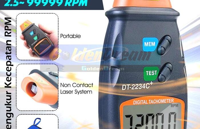 Alat pengukur kecepatan putaran (RPM) dengan teknologi laser non-contact yang presisi dan aman. Ideal untuk industri, otomotif, atau penggunaan rumahan.