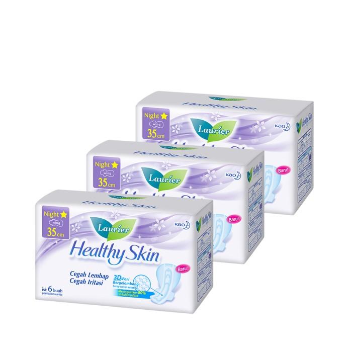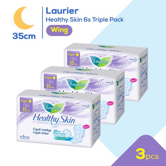Laurier Healthy Skin Night 6s Triple Pack hadir dengan teknologi canggih untuk kenyamanan dan perlindungan optimal saat menstruasi. Setiap paket berisi 3 pembalut Laurier Healthy Skin 35 cm dengan inovasi 3D pori bergelombang yang menyerap cairan secara instan dan menjaga kulit tetap kering.