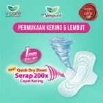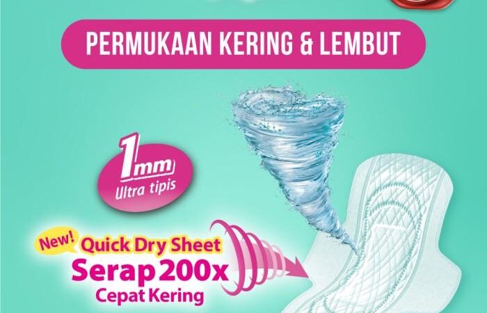 - Quick Dry Sheet: Lapisan pembalut berbahan khusus yang mempercepat penyerapan cairan dan menjaga permukaan tetap kering.