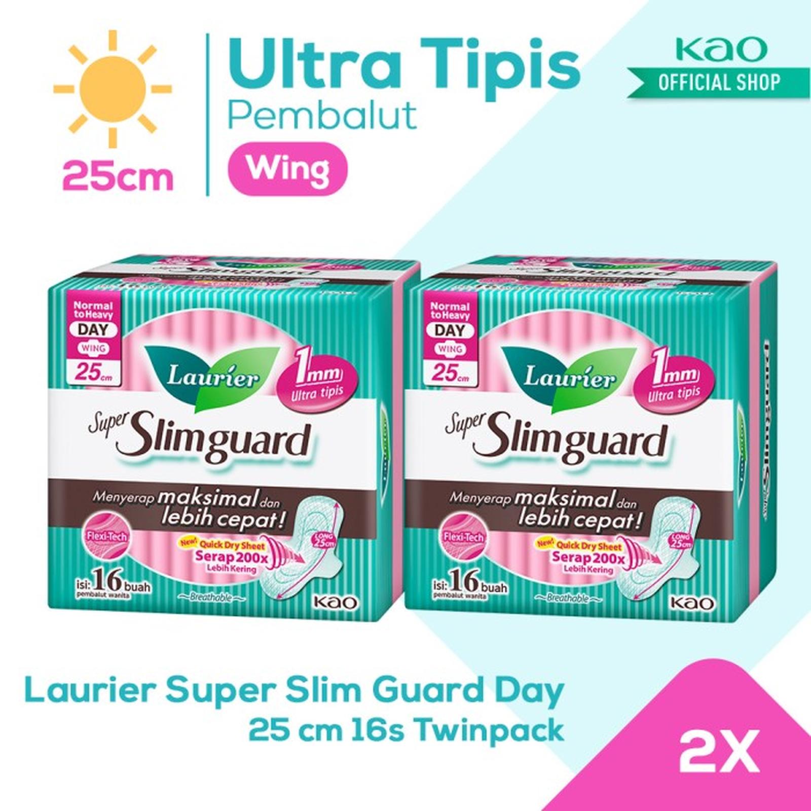 | Super Slimguard Day | 25 cm | 16 buah | Twinpack (isi 2 kotak, total 32 pembalut) |