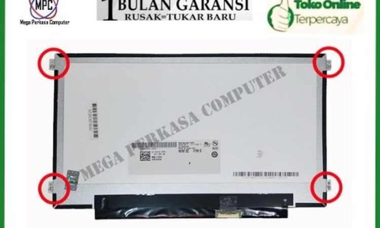 - 30 Pin (Kuping Kanan Kiri): Jenis konektor kabel data yang menghubungkan layar dengan motherboard laptop. Posisi pin tersebut berada di sisi kanan atau kiri belakang panel LCD, menjadi penentu kompatibilitas dengan model laptop tertentu.