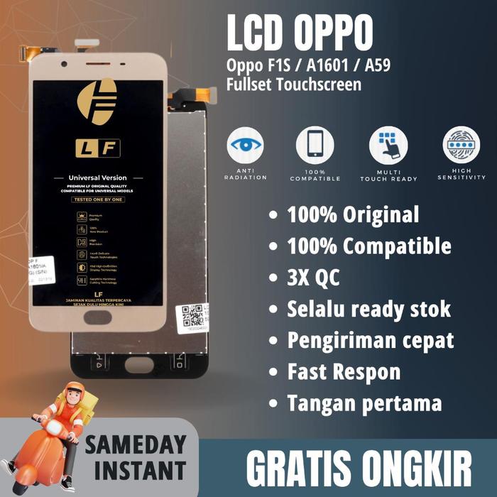 Toko LF Official Store menghadirkan LCD Original pengganti untuk OPPO F1s, A1601, dan A59. Setiap unit telah melalui proses Quality Control (QC) ketat dan uji fisik menyeluruh untuk memastikan presisi bezel sempurna, fungsi touchscreen responsif, serta kualitas tampilan visual yang jernih dan tajam.