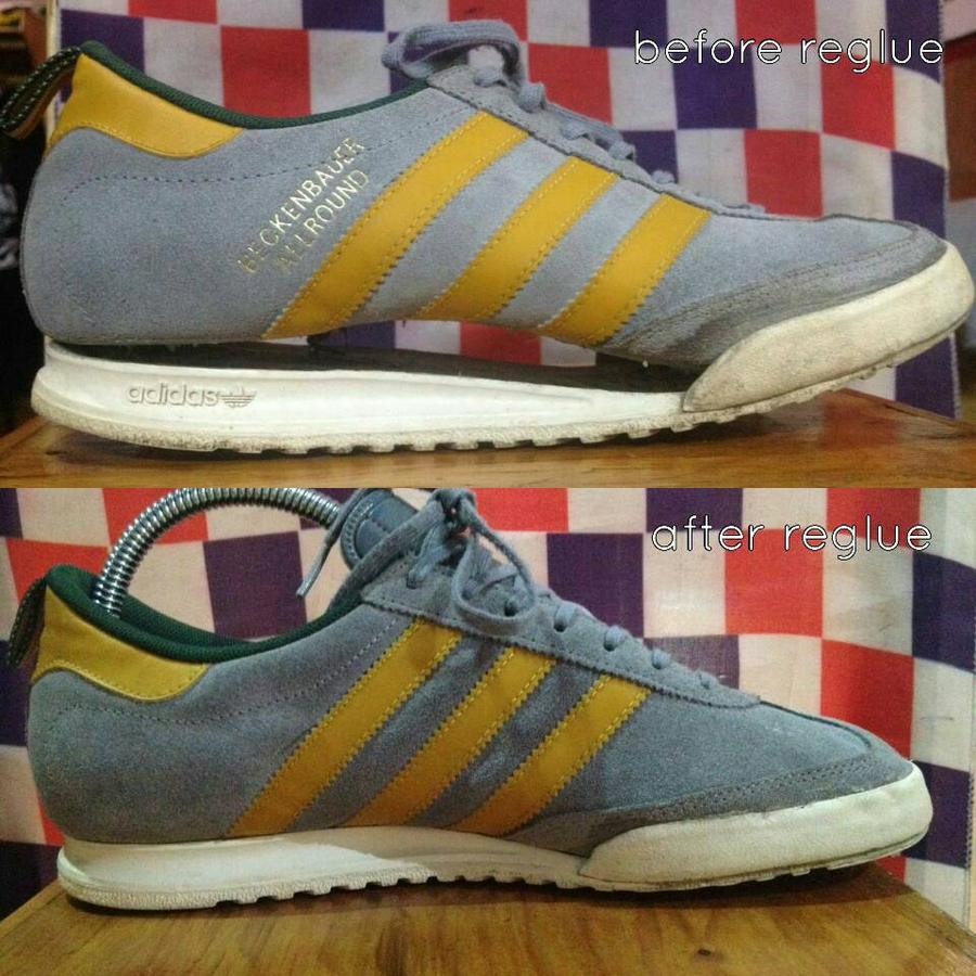 - Bersihkan permukaan sepatu dengan amplas halus hingga tidak ada bekas lem atau kotoran.