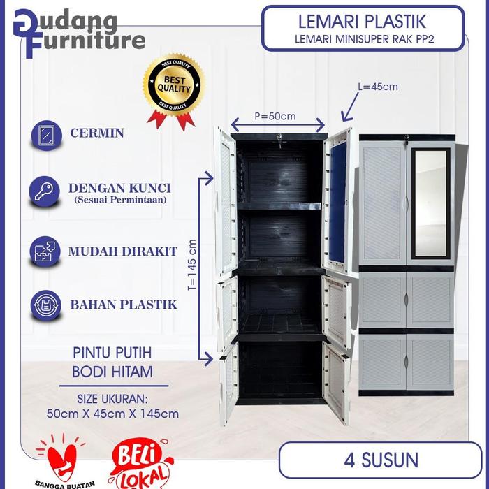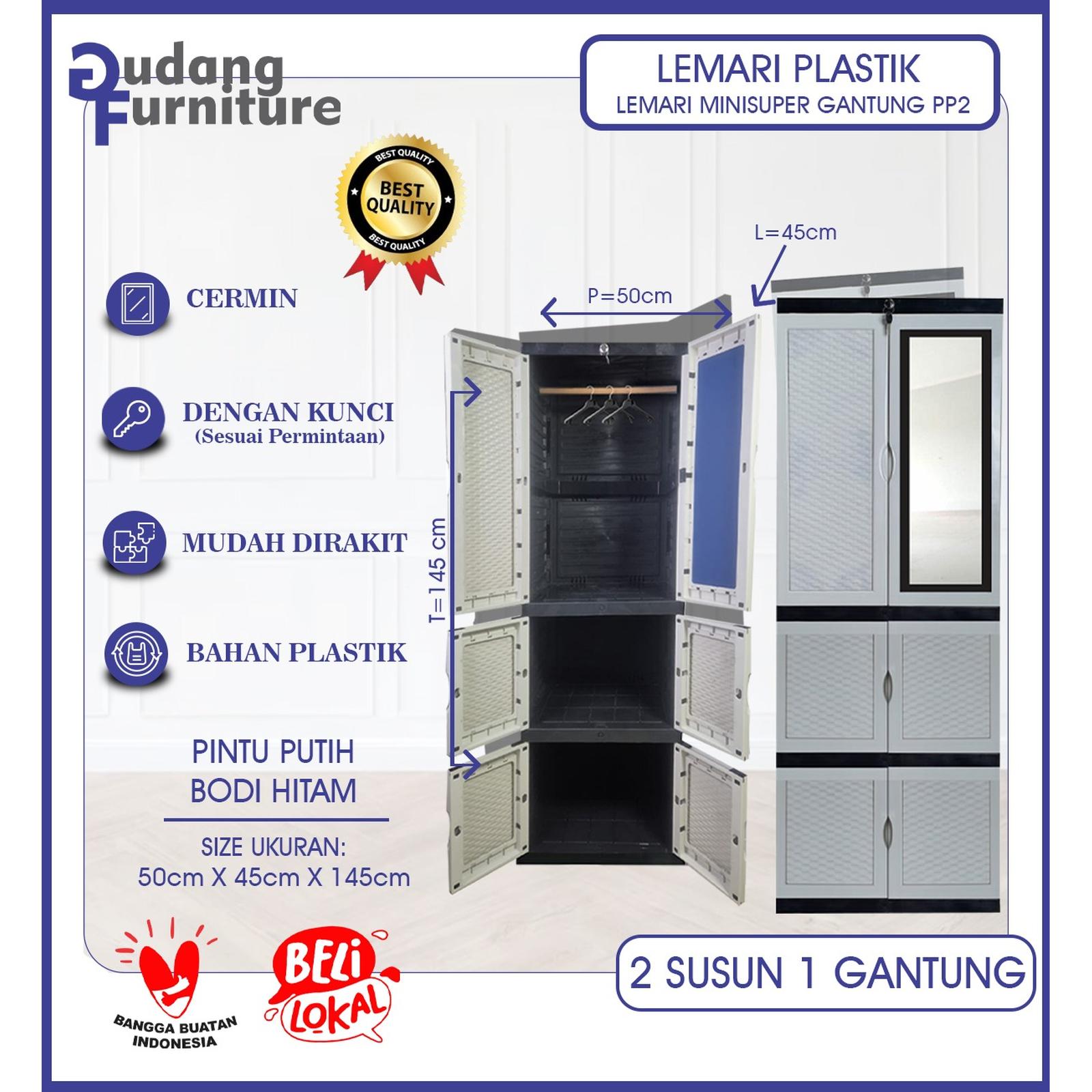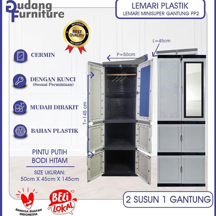 Solusi penyimpanan praktis dan higienis hadir untuk melengkapi rumah Anda! Lemari plastik 3 susun ini dirancang dengan dua pintu yang dilengkapi kaca dan sebuah gantungan pakaian di dalamnya, memberikan fleksibilitas untuk menyimpan berbagai jenis pakaian dan barang. Dengan tinggi 145 cm, lemari ini ideal untuk mengoptimalkan ruang terbatas.