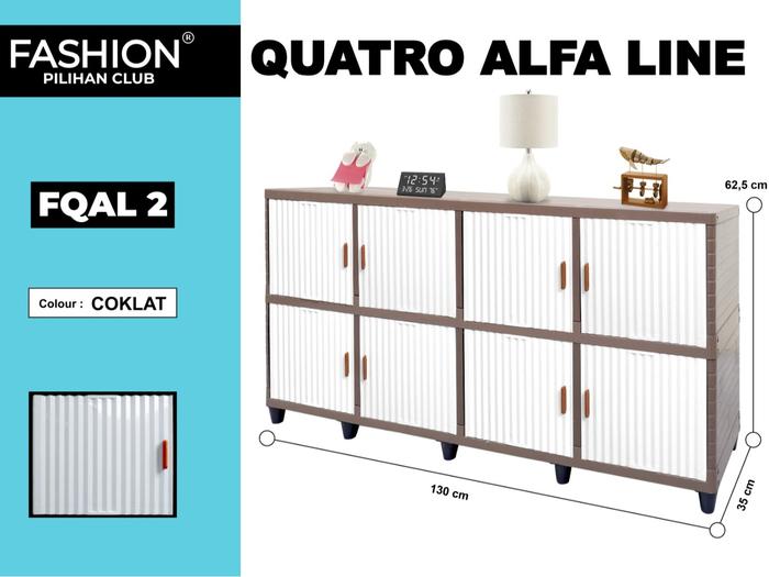Tampilkan koleksi pakaian dan barang Anda dengan gaya yang rapi dan modern menggunakan Lemari Plastik Club Fashion Quattro Alfa Line. Tersedia dalam dua pilihan model: Susun 2 dan Susun 3, yang dapat disesuaikan dengan kebutuhan ruang dan kapasitas penyimpanan Anda.