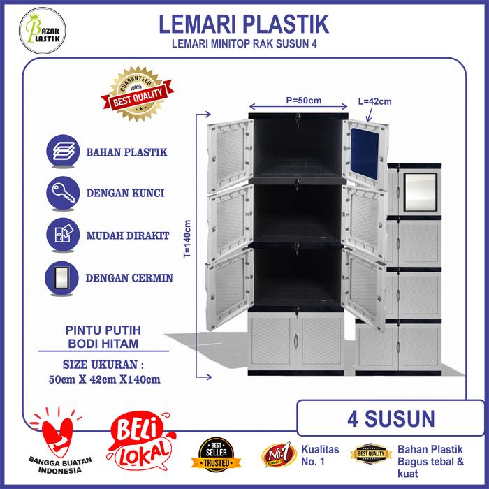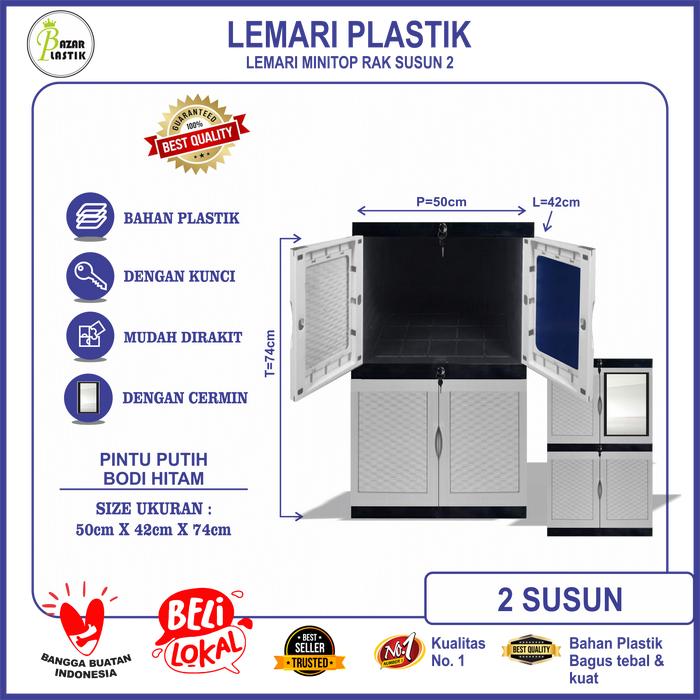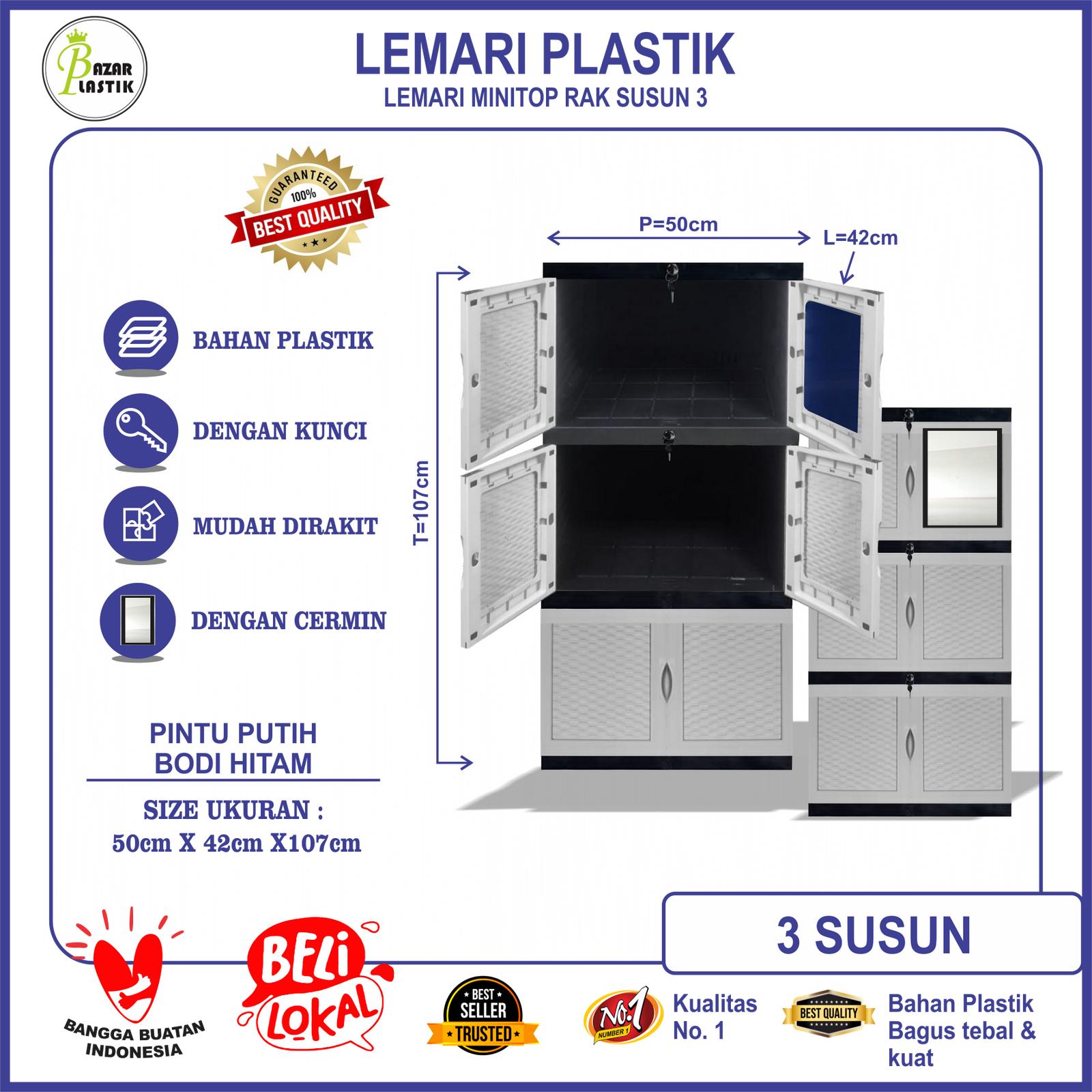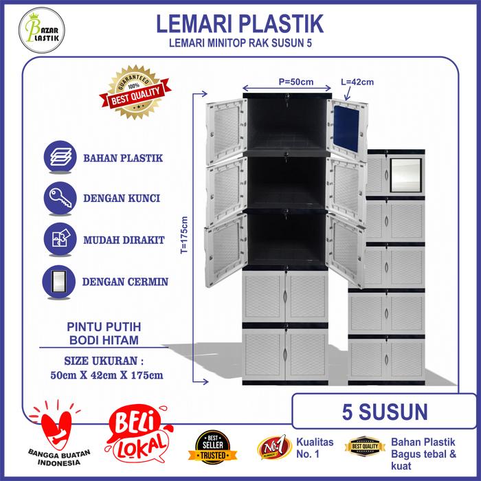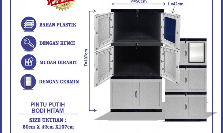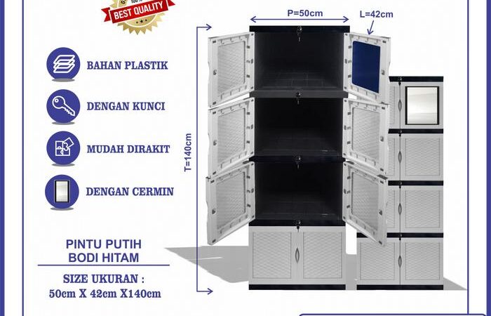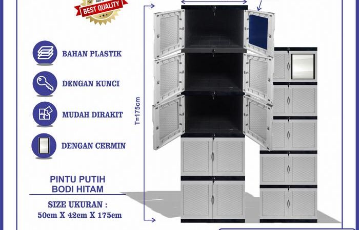 Tampilkan koleksi pakaian Anda dengan rapi menggunakan lemari plastik serbaguna yang kuat dan kokoh. Lemari ini hadir dengan desain motif timbul yang elegan, dilengkapi kaca dan kunci penuh untuk keamanan. Tersedia dalam berbagai pilihan susunan (2, 3, 4, dan 5 susun) untuk menyesuaikan kebutuhan ruang Anda.