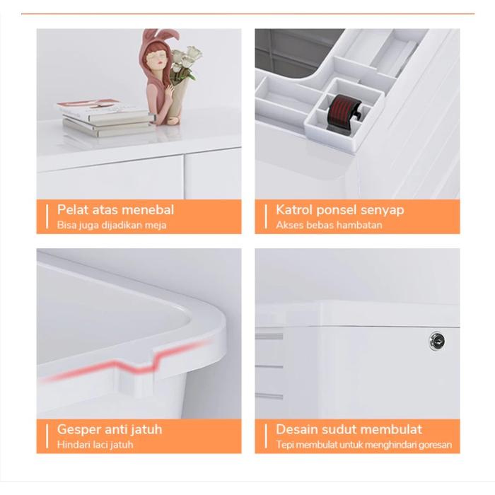 Fitur KeamananDilengkapi gasper (penahan) pada setiap laci agar tidak mudah jatuh dan kunci pada susunan pertama.