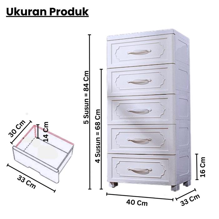 Pilihan Ukuran5 Tingkat: 40 cm (P) x 33 cm (L) x 84 cm (T)
