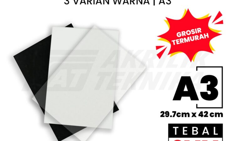 Temukan material kreatif premium untuk segala kebutuhan proyek Anda. Lembaran akrilik berukuran standar A3 (42 cm x 29,7 cm) dengan ketebalan 3mm ini terbuat dari bahan akrilik berkualitas tinggi yang menjamin kejernihan maksimal, kekuatan, serta ketahanan terhadap cuaca. Produk ini merupakan pilihan serbaguna untuk penggunaan indoor dan outdoor, tersedia dalam berbagai pilihan warna menarik untuk memperkaya kreasi Anda.