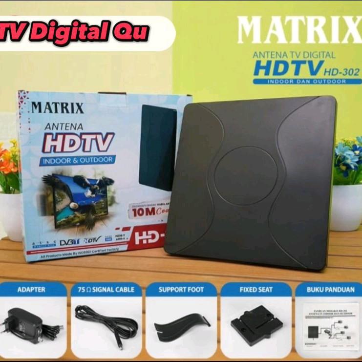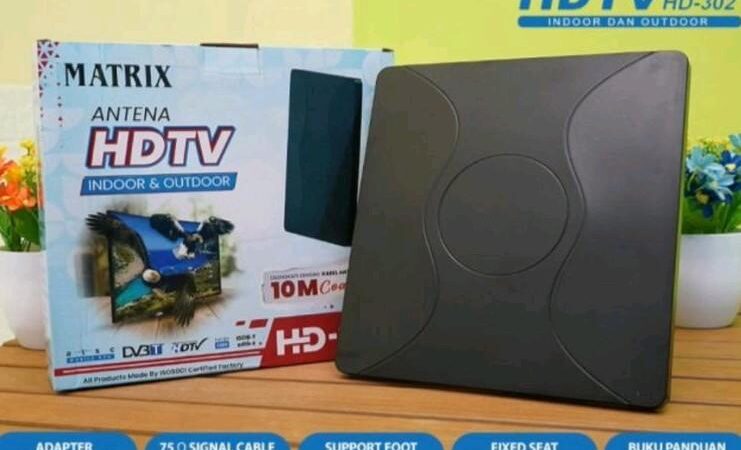 | Antena HD 302 | Antena digital unggulan untuk menangkap sinyal TV digital (DVB-T2) dengan jernih. Dapat dipasang secara indoor dengan sinyal kuat atau outdoor untuk jangkauan maksimal. Mencegah gambar pecah, artefak, atau putus-putus. | – Tipe: Indoor/Outdoor – Dilengkapi adaptor – Kabel coaxial 10 meter |