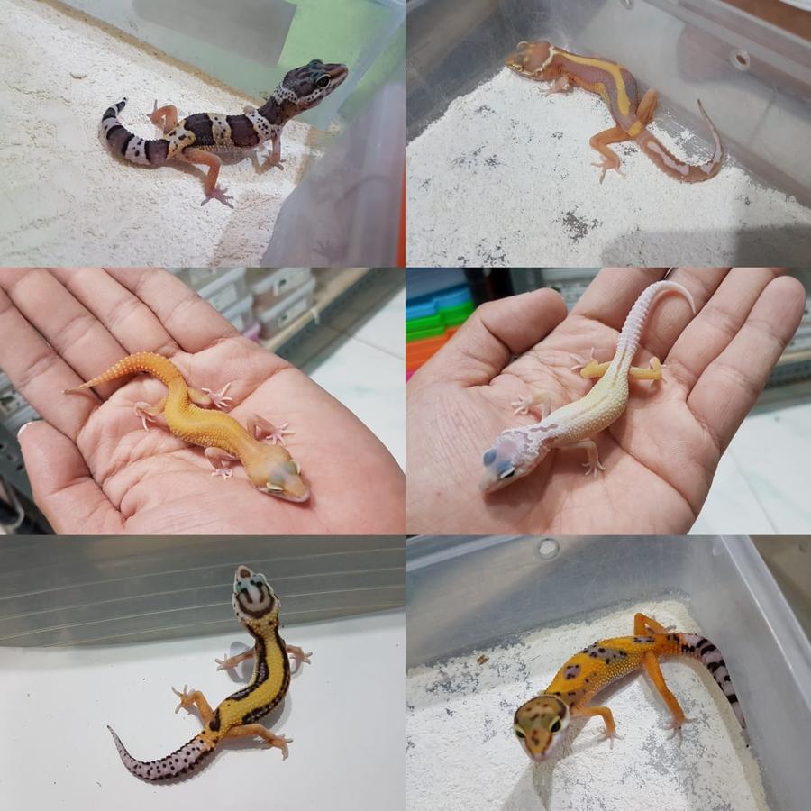 - Tremper/Bell/Radar: Strain leopard gecko albino dengan karakteristik berbeda (Tremper = albino pertama, Bell = mata merah, Radar = mata ruby).