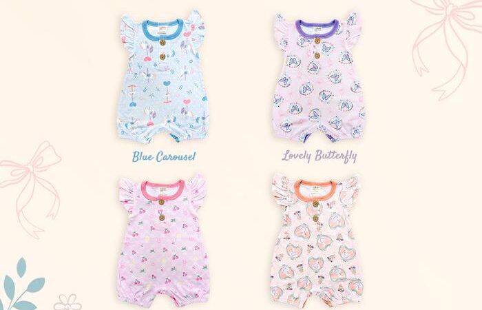 | Fitur Desain | – Kancing jepret di area popok untuk memudahkan ganti diaper – Kancing bulat di depan yang aman – Ruffle di lengan & motif bunga girly |