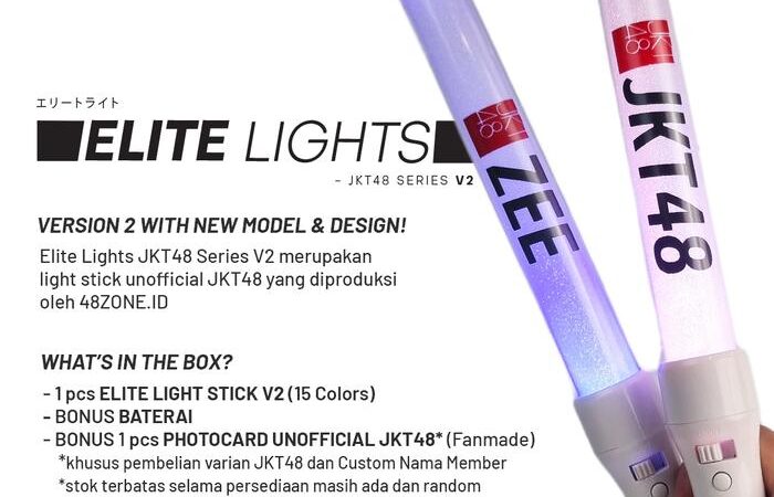 Bawa pulang Light Stick terbaru dan tercanggih, Elite Lights Series V2, yang dirancang khusus untuk fans JKT48 sejati! Dengan desain baru yang lebih fresh dan fitur unggulan, lampu ini akan membuat setiap momen konser dan theater JKT48 kamu jadi jauh lebih seru dan berkesan.