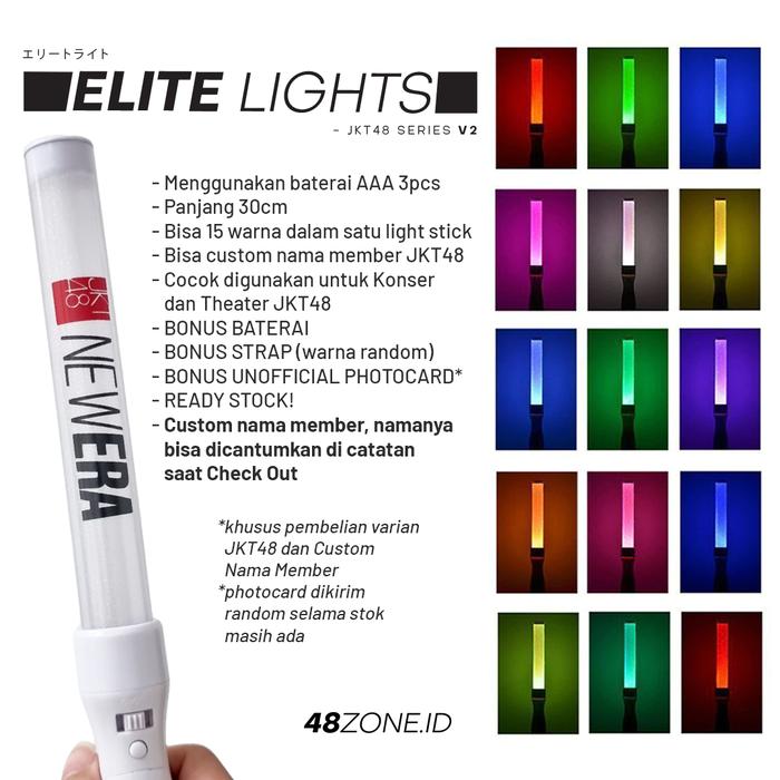Bawa pulang Light Stick terbaru dan tercanggih, Elite Lights Series V2, yang dirancang khusus untuk fans JKT48 sejati! Dengan desain baru yang lebih fresh dan fitur unggulan, lampu ini akan membuat setiap momen konser dan theater JKT48 kamu jadi jauh lebih seru dan berkesan.