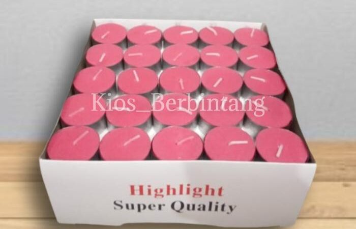 - Tealight: Lilin kecil dalam wadah logam/alumunium, biasa digunakan untuk dekorasi atau aromaterapi.
