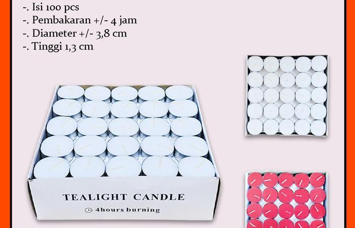 - Tealight: Jenis lilin kecil dalam wadah kaleng, umumnya digunakan untuk dekorasi atau aromaterapi.