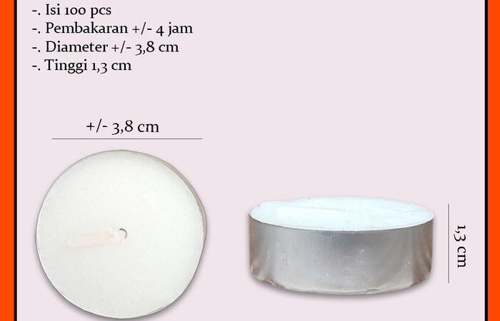 | Ukuran Lilin | Diameter: ±3,8 cm, Tinggi: ±1,3 cm |