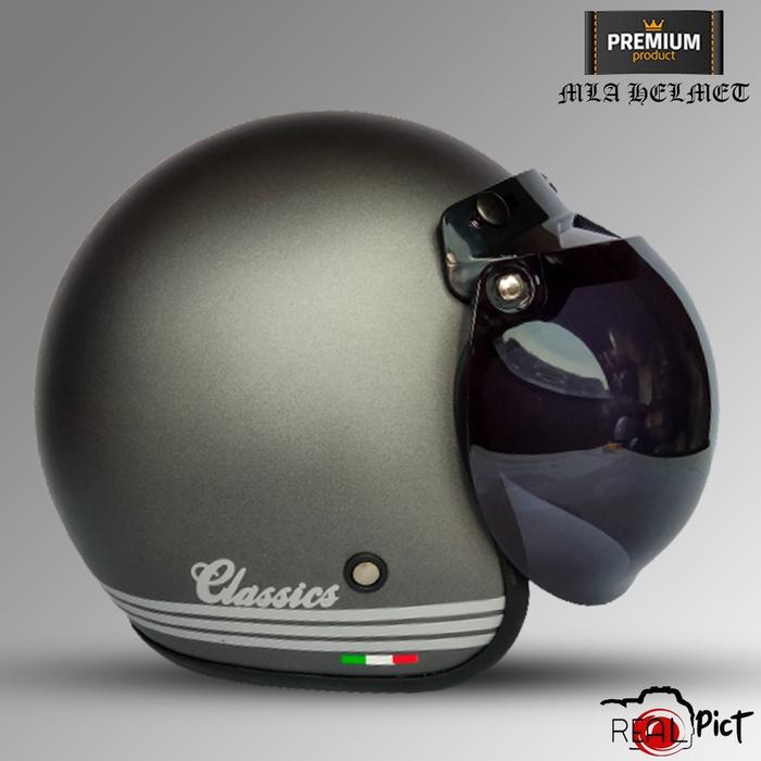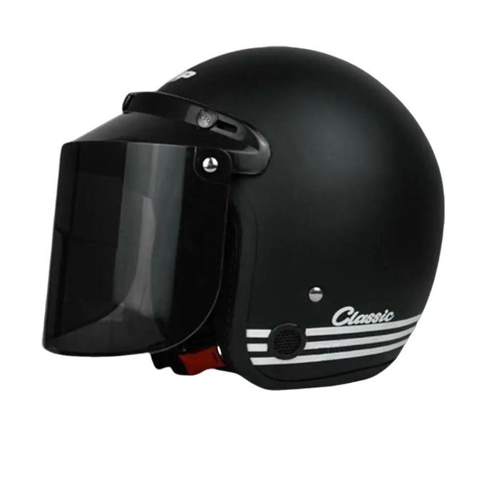 Dapatkan penawaran spesial Live Obral kami! Helm retro classic dengan desain timeless untuk pria dan wanita. Helm ini dilengkapi dengan dua jenis kaca (visor): kaca cembung dan kaca datar, keduanya sudah berstandar SNI sehingga terjamin keamanannya.