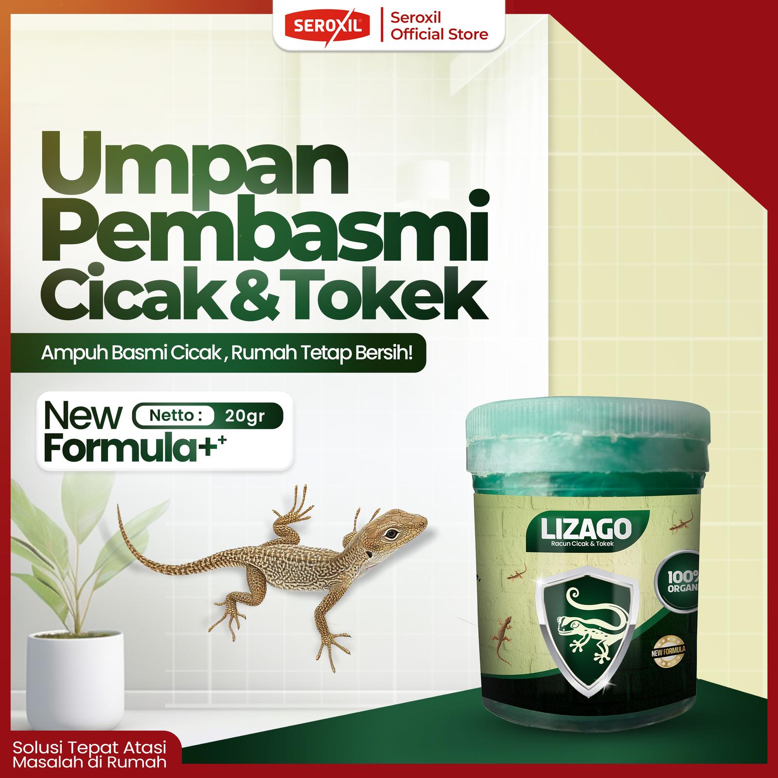 Bebaskan rumah Anda dari gangguan cicak, tokek, dan kecoa dengan Lizago, solusi herbal praktis dan ampuh. Formulasi pasta berwarna hijau ini bekerja sebagai racun kontak dan lambung yang sangat efektif. Dibuat dari bahan-bahan alami pilihan yang tidak berbau, menjadikannya pilihan yang aman dan nyaman untuk lingkungan rumah serta gudang Anda.