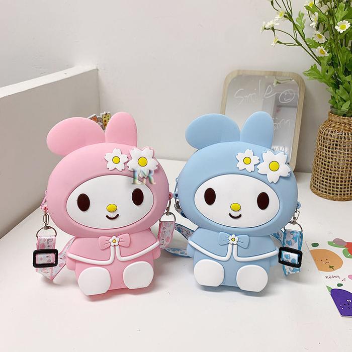 Tampil semakin menggemaskan dengan tas selempang karakter favorit! Koleksi tas dari LNR Shop ini dibuat dari bahan silicone lembut berkualitas tinggi dengan motif Sanrio Kuromi dan My Melody yang timbul dan detail. Dilengkapi resleting untuk keamanan barang bawaan dan tali panjang yang dapat disesuaikan, membuatnya nyaman dipakai oleh anak-anak. Sempurna untuk digunakan sebagai dompet koin kecil atau tas jalan-jalan sehari-hari yang stylish.