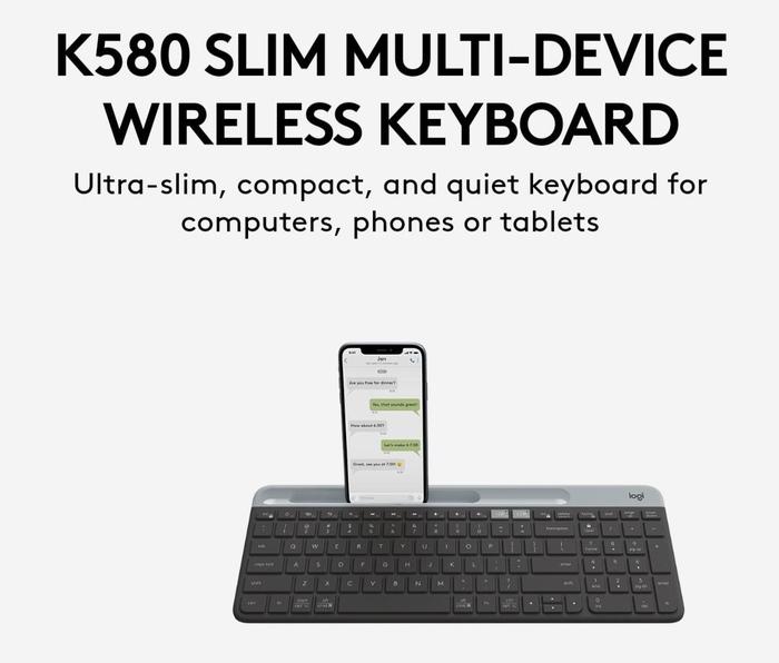 Tingkatkan produktivitas Anda dengan keyboard nirkabel yang dirancang untuk mengelola banyak perangkat. Logitech K580 memungkinkan Anda terhubung hingga dua perangkat sekaligus via Bluetooth dan USB Unifying Receiver, memudahkan peralihan antara laptop, smartphone, atau tablet. Nikmati ketikan yang nyaman dan senyap dengan layout slim dan tombol yang responsif. Keyboard ini juga dilengkapi slot khusus untuk mendirikan ponsel atau tablet Anda, menciptakan workstation yang rapi dan efisien.
