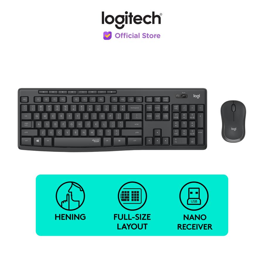 - MK295 Silent Wireless Combo: Desain ergonomis dengan teknologi SilentTouch (reduksi noise hingga 90%).