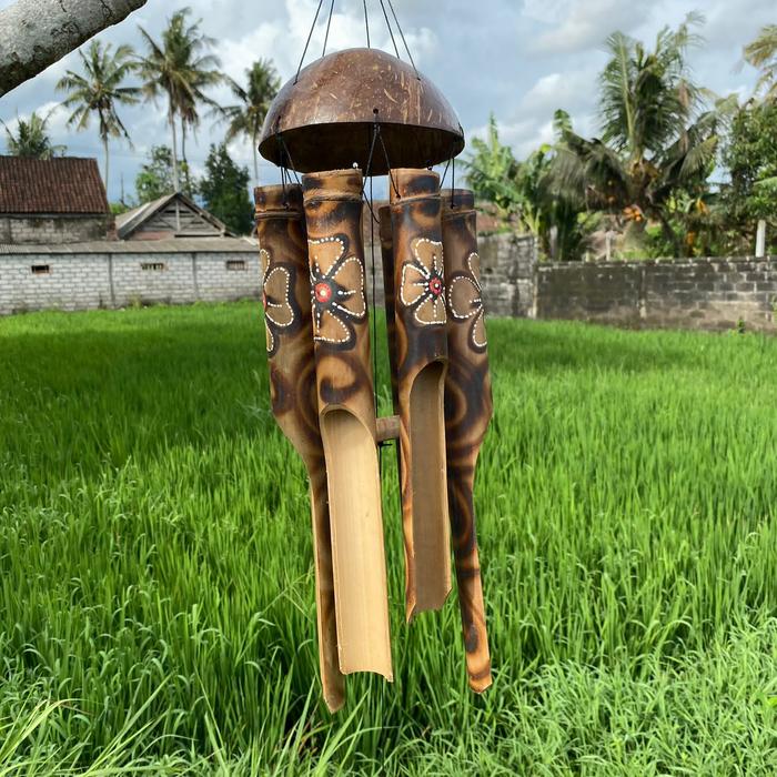 Hadirkan nuansa damai dan estetika alam Bali di rumah Anda. Setiap helai bambu dan potongan batok kelapa disusun dengan teliti, menghasilkan bunyi gemericik yang lembut dan menenangkan ketika diterpa angin. Cocok menjadi hiasan untuk teras, jendela, taman, atau ruang meditasi.