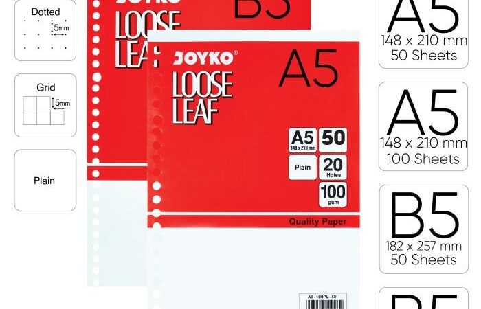 - Loose Leaf: Kertas terpisah dengan lubang khusus untuk dimasukkan ke dalam binder/folder.