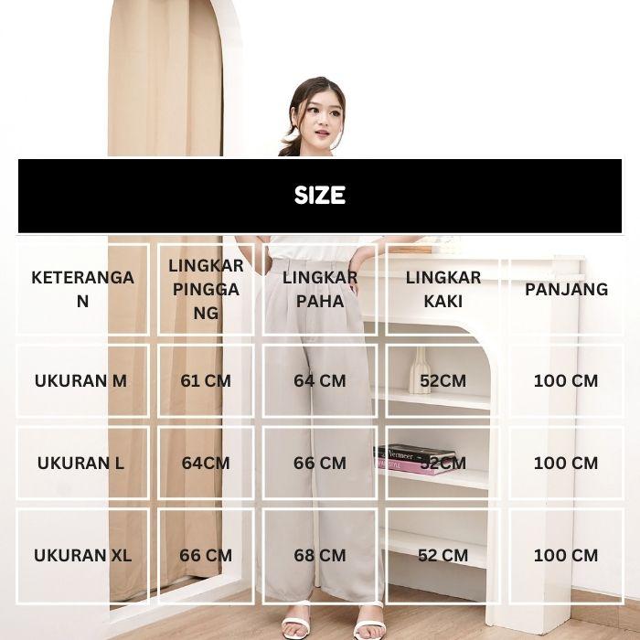 Hadir dengan desain terbaru dan material premium yang lebih flowy serta jatuh sempurna di badan. Kini tersedia untuk semua bentuk tubuh dengan tambahan ukuran BIG SIZE (XL). Celana ini dirancang dengan model high-waist dan karet elastis di bagian belakang untuk kenyamanan maksimal.