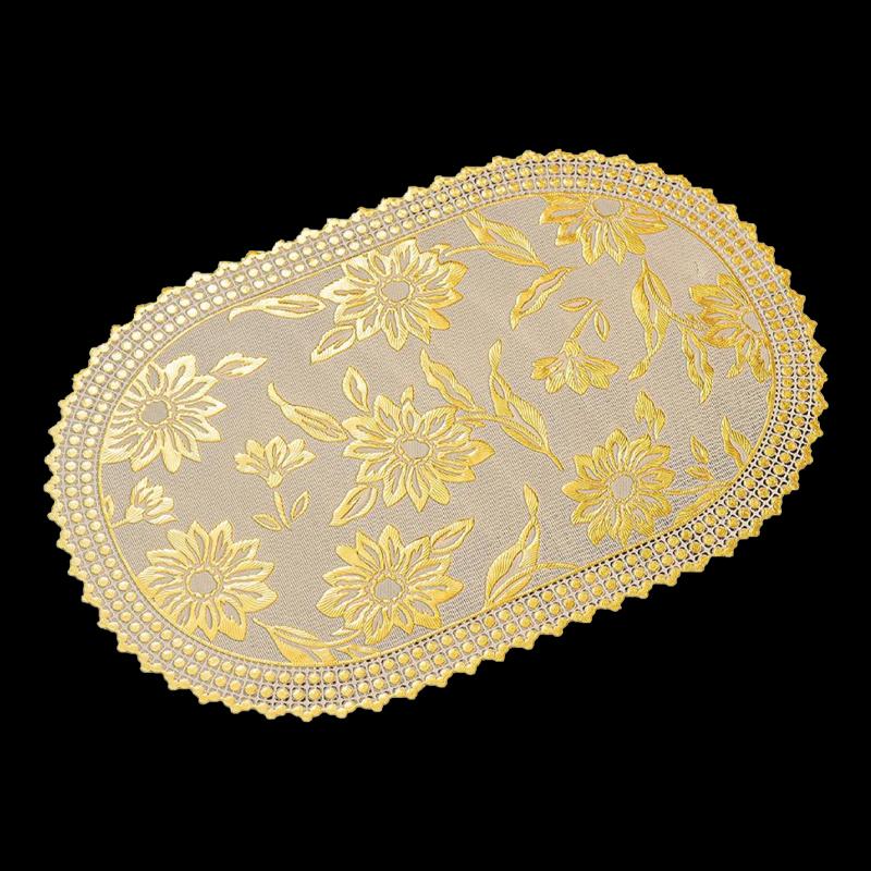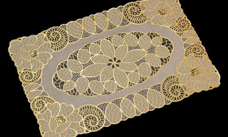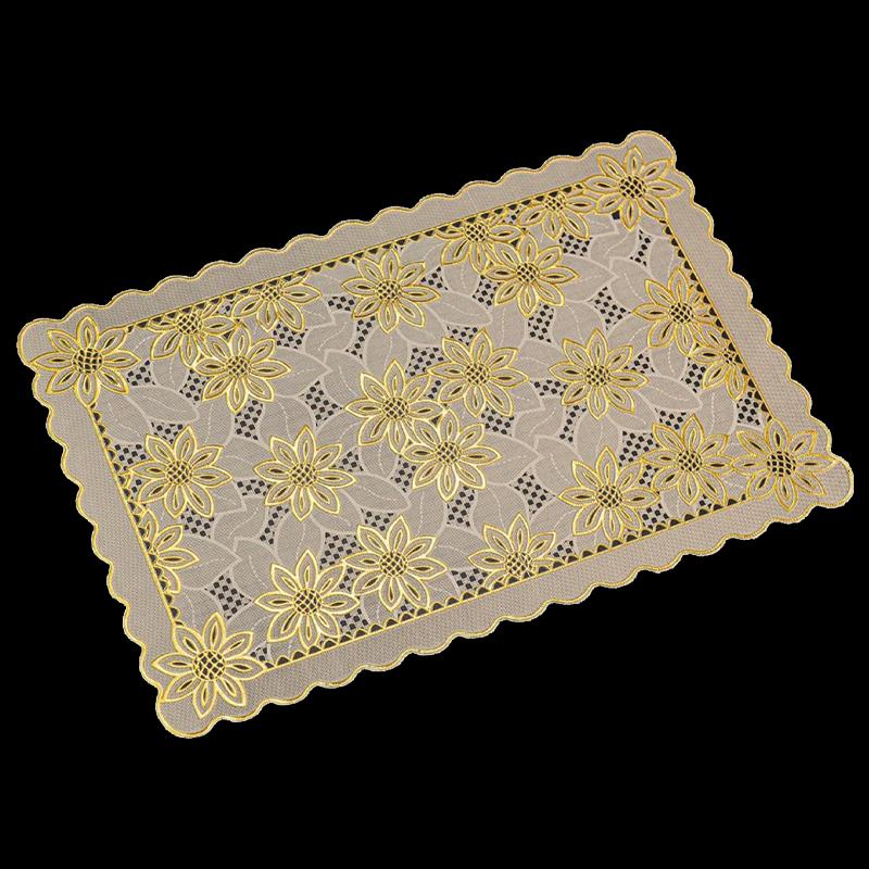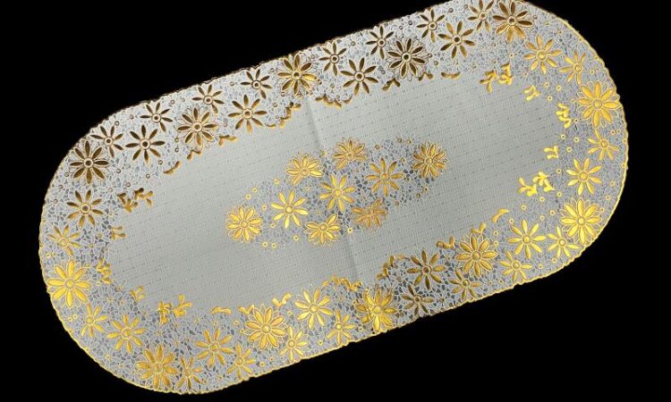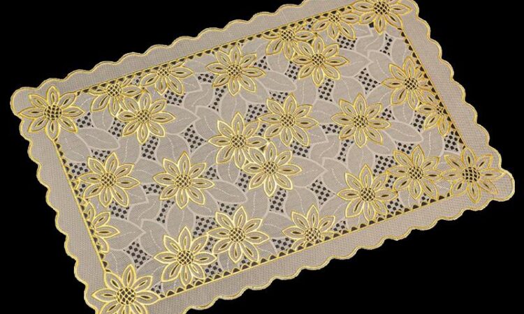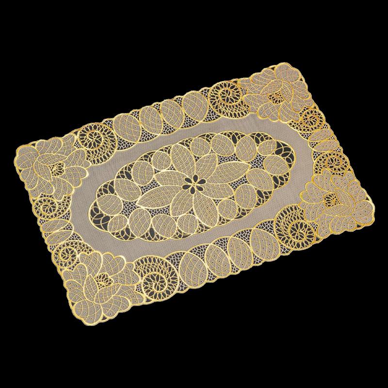 - Desain Elegan: Motif bordir cutwork dengan sentuhan gold/silver cocok untuk ruang tamu atau meja makan.