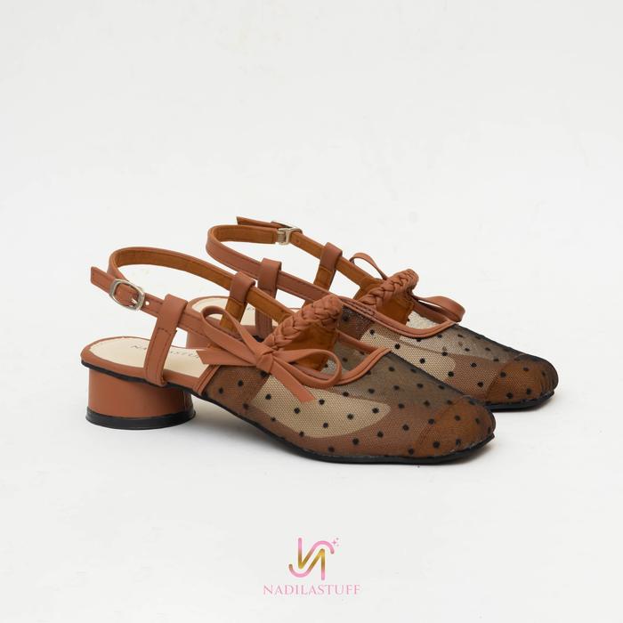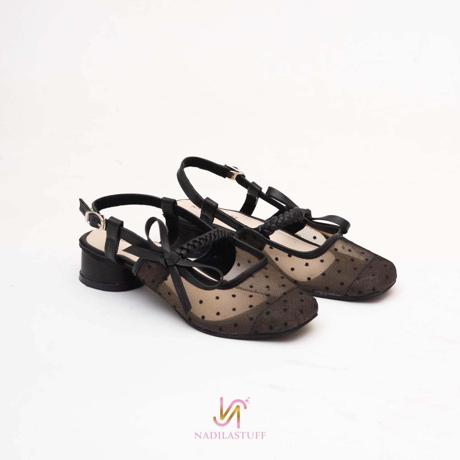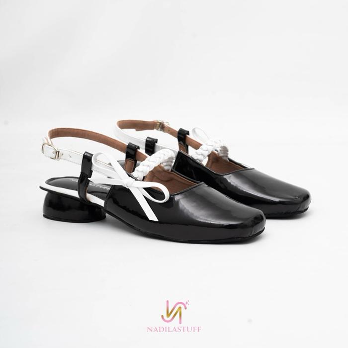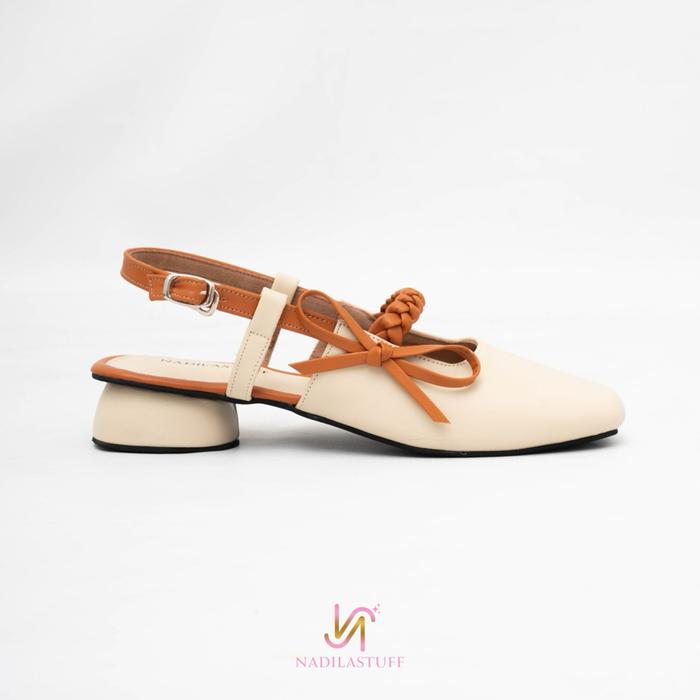Tampil percaya diri dengan Lucia Mules yang memadukan desain elegan dan kenyamanan sepanjang hari. Sepatu ini didesain dengan detail anyaman yang manis dan pita dekoratif di bagian samping, memberikan kesan feminin yang sophisticated. Tali slingback yang dilengkapi gesper memastikan fit yang pas dan nyaman, sementara hak rendah berbentuk bulat setinggi 4cm memberikan stabilitas sempurna untuk aktivitas harian Anda.