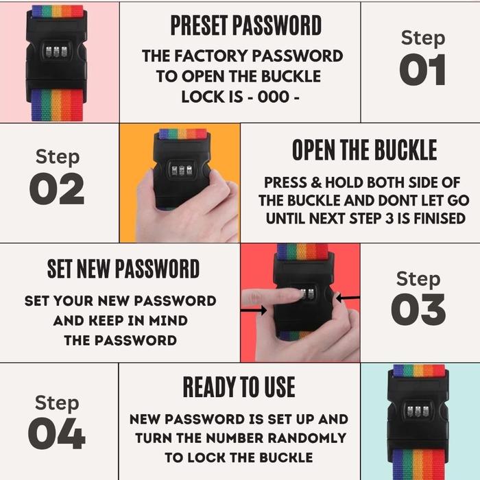 | Universal Compatibility | Cocok untuk segala jenis dan ukuran koper, tas travel, dan bagasi lainnya. |