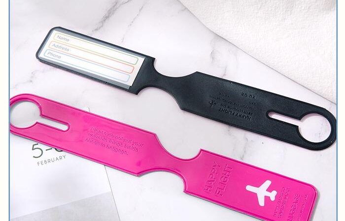 - Luggage Tag / Travel Tag: Aksesori perjalanan yang dipasang pada gagang koper atau tas. Fungsinya sebagai penanda identitas pemilik agar bagasi mudah dikenali dan tidak tertukar. Biasanya dilengkapi dengan wadah untuk menyelipkan kartu berisi data diri.