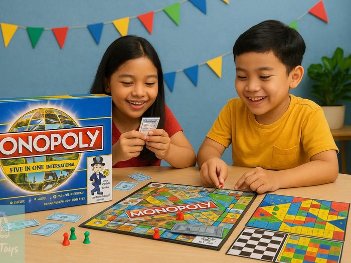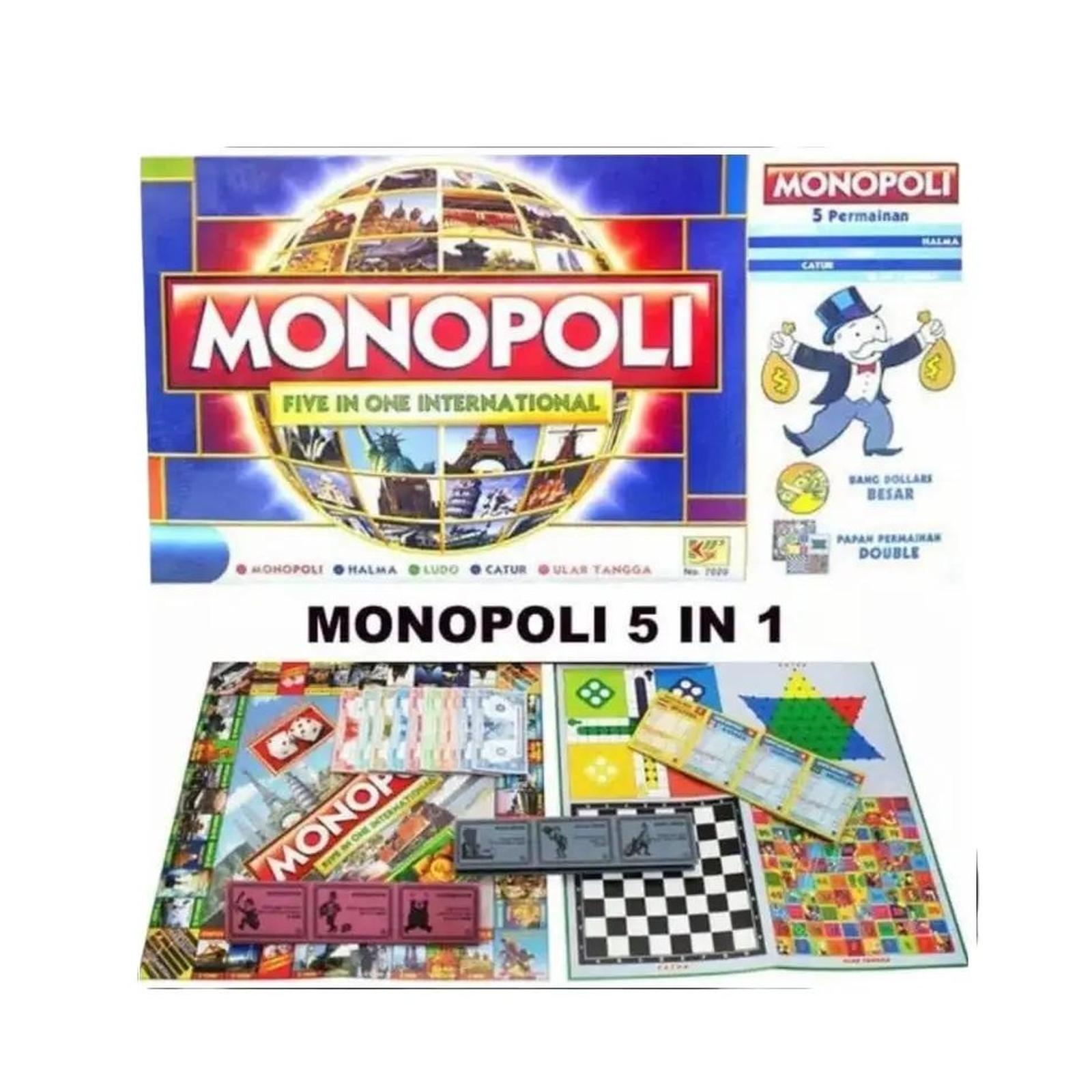 Semua komponen yang Anda butuhkan sudah tersedia di dalam satu kotak yang praktis. Mainkan Monopoli versi internasional dengan uang, kartu negara, kartu kesempatan, serta bangun rumah dan hotel. Beralihlah ke permainan lain seperti Catur, Ular Tangga, Halma, dan Ludo dengan mudah menggunakan papan kedua dan pion-pion yang disediakan. Set ini sangat cocok untuk mengasah strategi, melatih kesabaran, dan menjadi sumber hiburan berkualitas untuk keluarga.