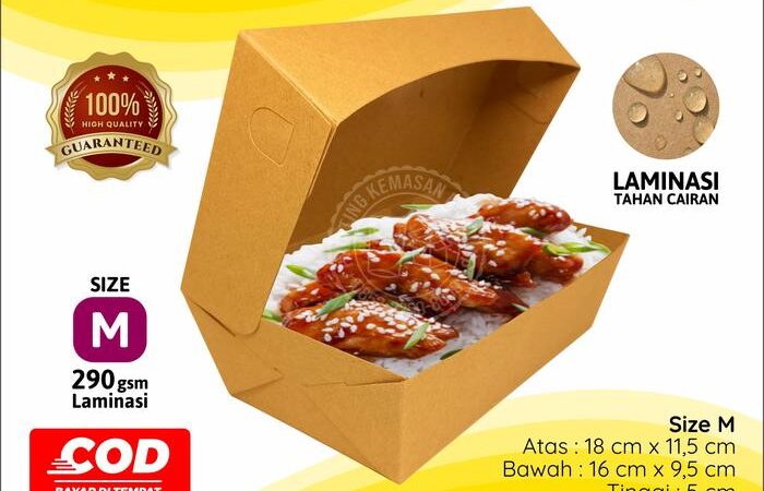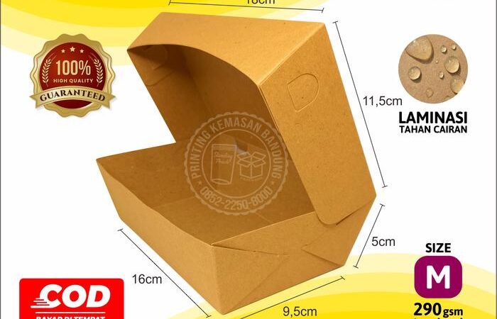 Tersedia dalam dua pilihan kemasan: 25 pcs dan 50 pcs. Bahan yang digunakan adalah Eco Kraft 290gsm dengan lapisan PE DOFF Food Grade di bagian dalam, menjadikannya pilihan yang aman dan elegan untuk kemasan makanan Anda.