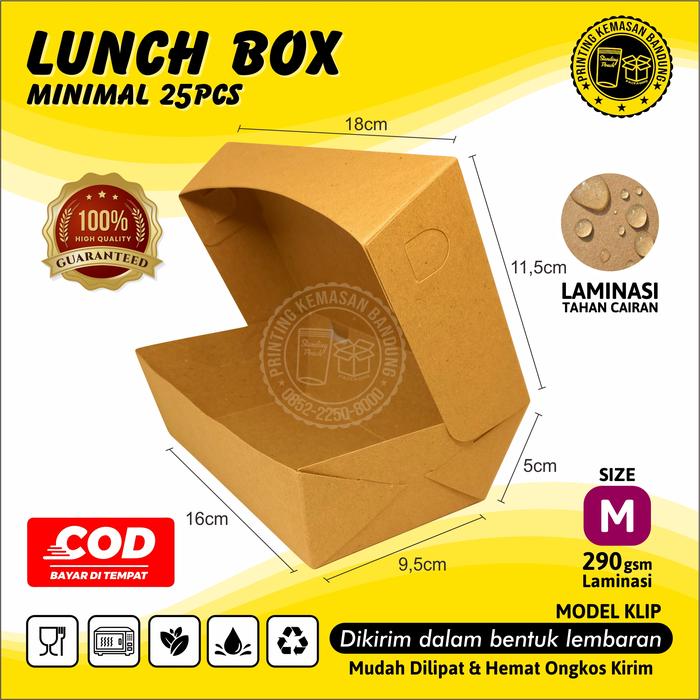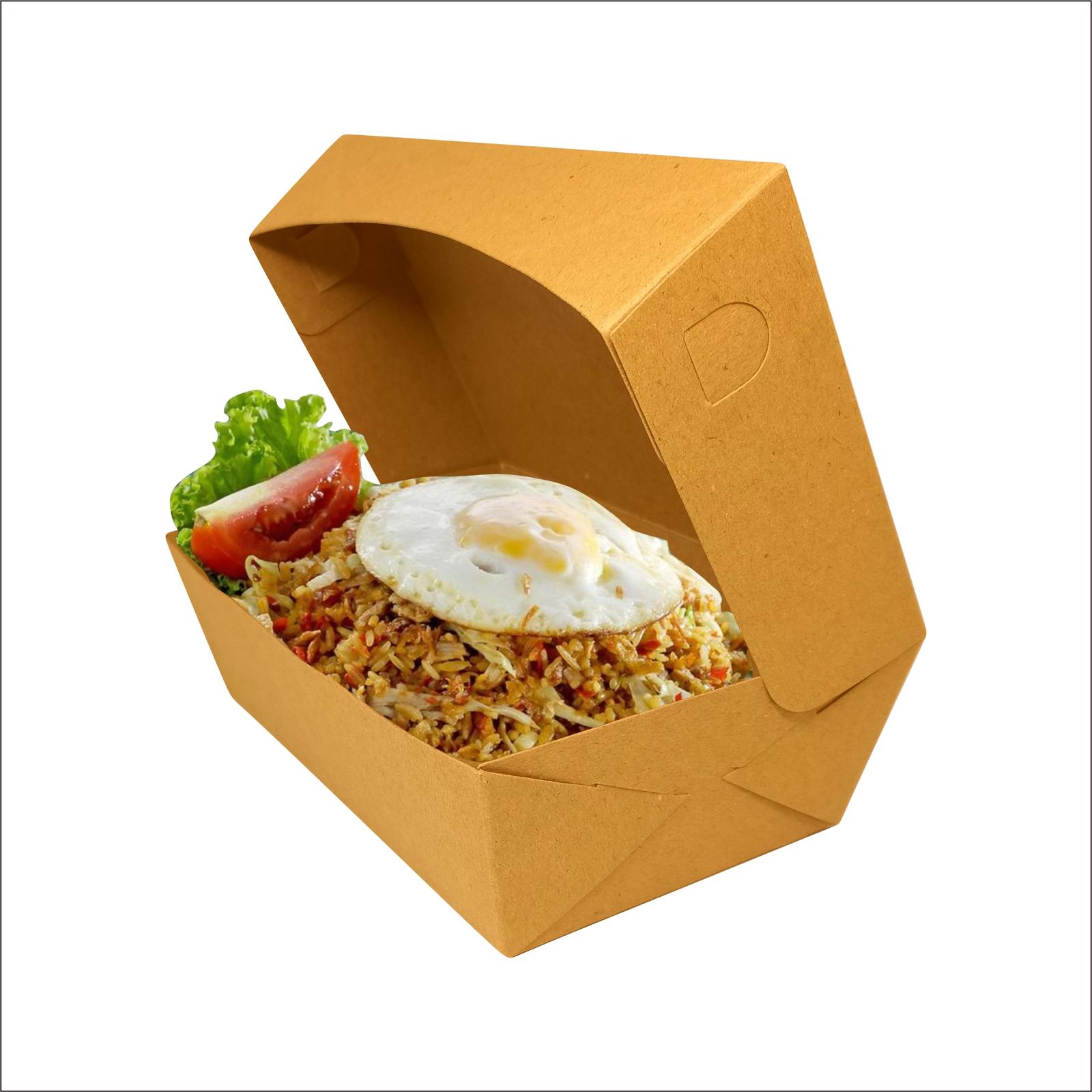 Tersedia dalam dua pilihan kemasan: 25 pcs dan 50 pcs. Bahan yang digunakan adalah Eco Kraft 290gsm dengan lapisan PE DOFF Food Grade di bagian dalam, menjadikannya pilihan yang aman dan elegan untuk kemasan makanan Anda.