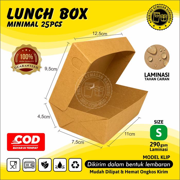 Tampilkan produk kuliner Anda dengan kemasan yang premium dan ramah lingkungan. Lunch Box Size S terbuat dari material kertas kraft food grade berkualitas tinggi dengan ketebalan 290gsm, menjadikannya kokoh dan ideal untuk berbagai jenis makanan seperti dimsum, takoyaki, snack, fried food, dan pastry.